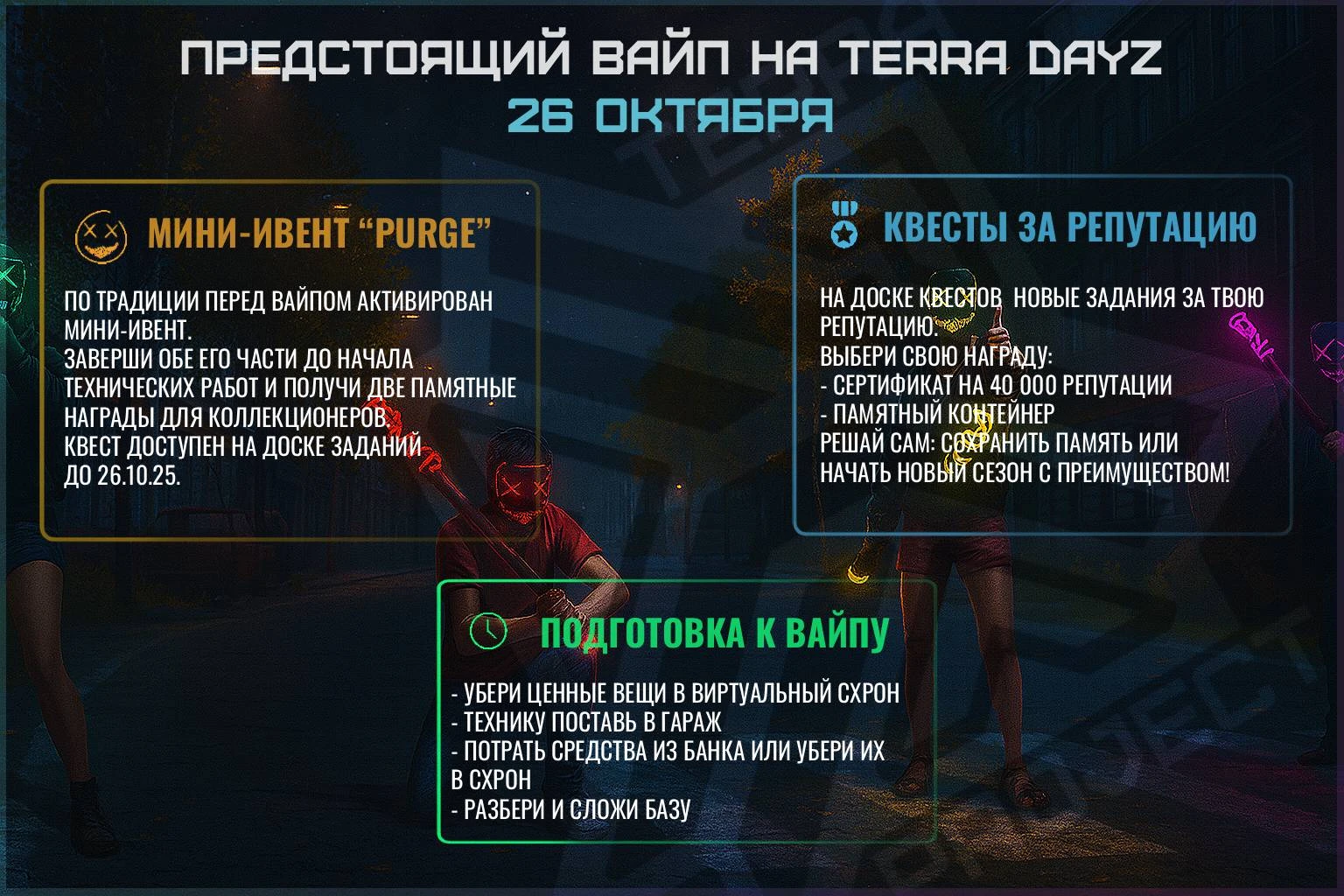 Подготовься заранее — очистка серверов Terra DayZ пройдёт в ночь с 25 на 26 октября.